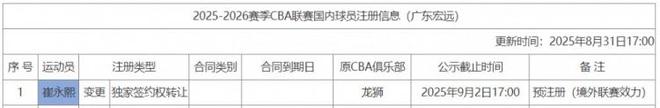 预注册之后,崔永熙将具备征战新赛季CBA的资格,一旦他之后和广东男篮正式签约,他将代表广东出战。