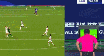 然而,视频助理裁判介入判罚,并且要求主裁判麦麦提江回看慢镜头。从慢镜头来看,张稀哲中场拼抢时撞倒吕焯毅,主裁判回看慢镜头之后判罚进球无效。