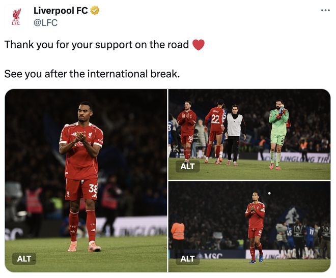 赛后,利物浦官方社媒发文感谢了球迷们的支持。利物浦官方写到:谢谢球迷们来客场支持,国际比赛日后再见。