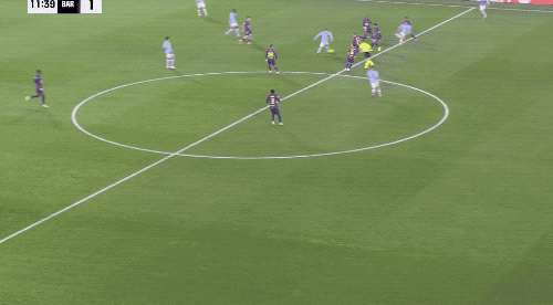 上半场结束,巴萨客场3-2暂时领先,两队射门14-4,对攻战踢得酣畅淋漓。和火爆的上半场相比,下半场的前25分钟相当平淡,巴萨只有3次射门,塞尔塔更是没有射门。