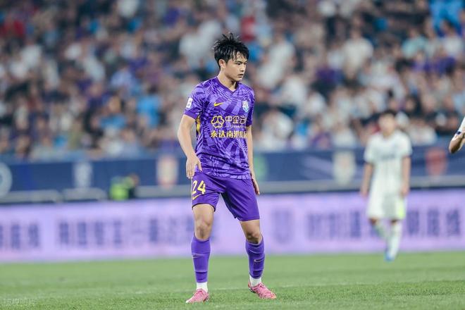 陈哲宣的成长轨迹,堪称中国青训体系的标准化产出:根正苗红的山东泰山青训出身,2022年在亚冠赛场完成职业生涯首秀,2024年租借至中甲石家庄功夫磨练,出场29次攻入1球。本赛季转投津门虎,恰逢球队中场新老交替,于是他顺理成章地填补了老将退役留下的空缺。