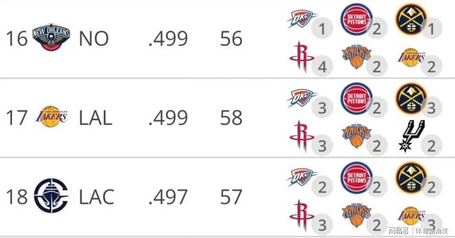 再看看湖人接下来的赛程安排,整体难度在联盟里排第17位,对手的平均胜率是49.9%。湖人队和现在西部排名前三的球队都还有三场硬仗要打呢,和东部前二的活塞、尼克斯也还没碰过面。在剩余的赛程里,雷霆、掘金、马刺这三支球队的难度那可是最高的哟!