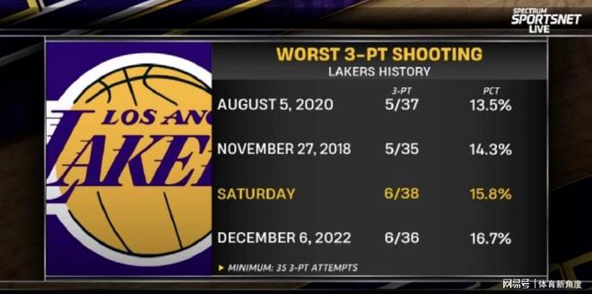 而且啊,这可不是湖人头一回这么“铁”了。近3场比赛里,这已经是第二次全命中率连20%都不到啦。之前和太阳那场,全队三分球37投7中,命中率也就18.9%,那场面,也是够让人揪心的。